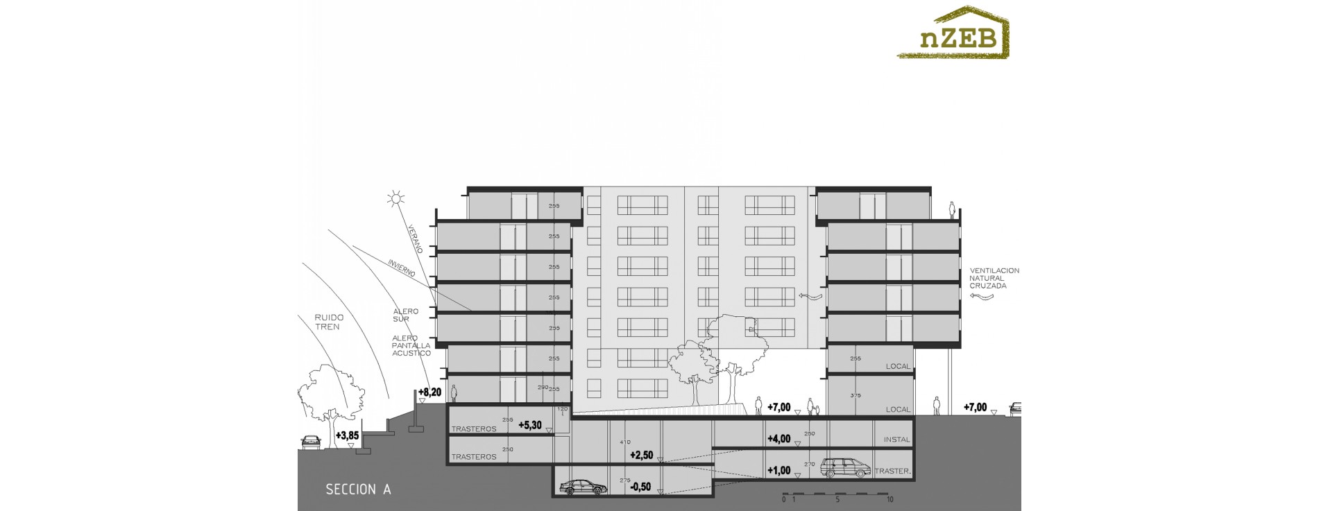 Abrimos el espacio interior e incrementamos el contacto de las viviendas con la luz, recuperando su conexión con el espacio público, de modo que todas las viviendas tienen ventilación cruzada en fachadas opuestas y salones con al menos una fachada de orientación SO o SE.