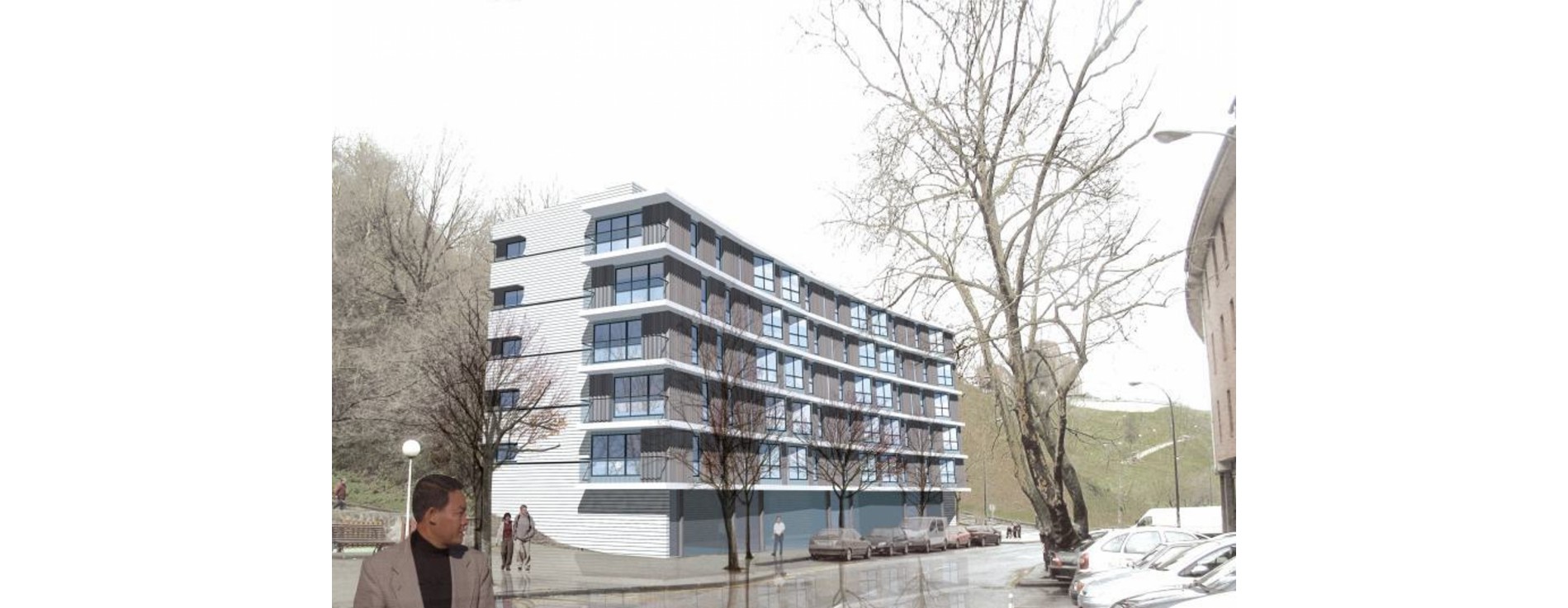 tipo de obra: Concurso Viviendas Protección Oficial situación: Iturrigorri, Bilbao promotor: Dpto Vivienda y Urbanismo Gobierno Vasco año: 2010 El proyecto se aborda desde el estudio de la topografía, las orientaciones y las condiciones funcionales de la vivienda. La orientación del bloque, según el eje Norte-Sur, y la linealidad de su tipología, hacen que exista un soleamiento compensado que afecta a los frentes este y oeste. La propuesta saca ventaja de tales condiciones proponiendo viviendas de doble orientación. Se ordena la planta mediante una distribución que divide claramente estancias de día y de noche, respetando una colindancia de usos compatibles. Potenciamos la ubicación de las zonas de día de las viviendas hacia el espacio urbano y el soleamiento gracias a la orientación de sus ventanales principales. Las estancias de noche quedan reservadas a los espacios del monte más tranquilos. Entre ambas fachadas existe comunicación que permite equilibrar los balances energéticos naturales así como una ventilación cruzada óptima. La vivienda de la esquina sur se orienta hacia la pequeña plaza que existe con mecanismos arquitectónicos de protección pasiva.