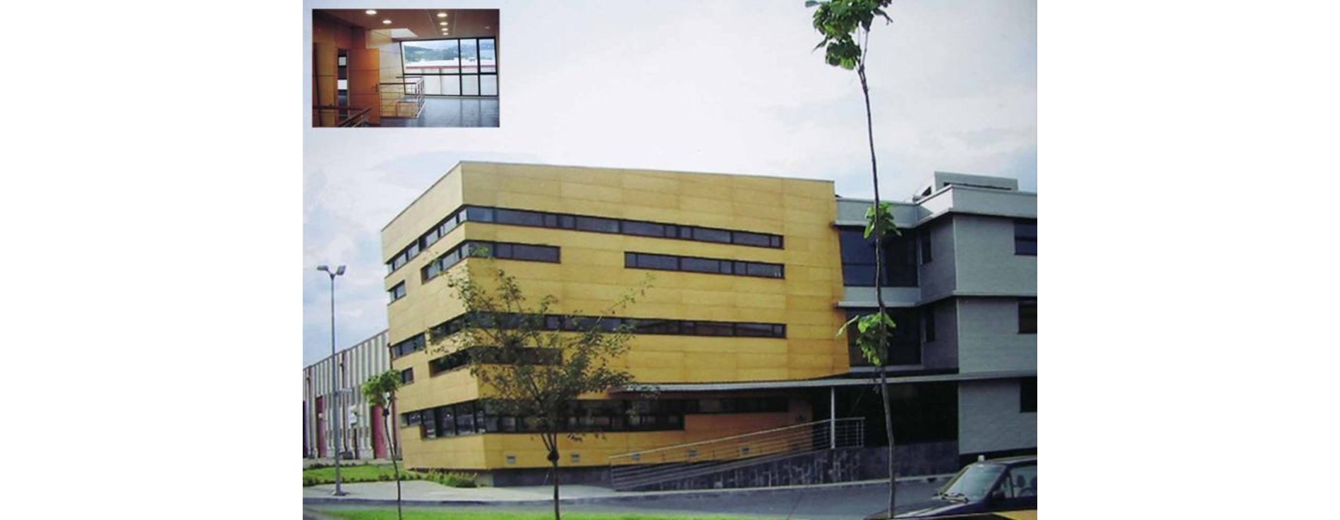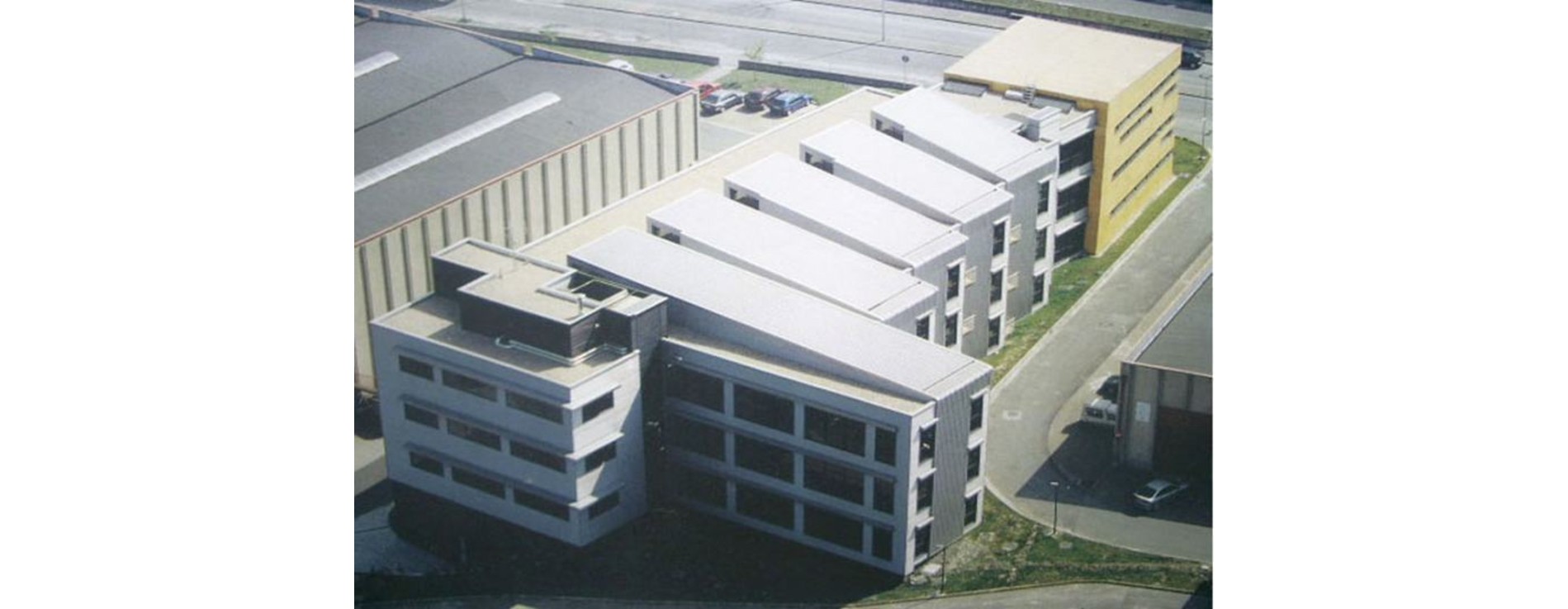 Coautor: José Mª Basañez y Ruben de Miguel arqtos.Sobre el basamento semienterrado se disponen dos cuerpos de tres plantas cada uno, dedicados a módulos de oficinas y cuya característica principal es la flexibilidad de su distribución. El volumen más representativo se sitúa en cabeza ocupando la posición central del polígono. En su silueta inclinada se simboliza el icono de la sociedad que lo promueve (SPRI) convirtiéndose en elemento de referencia del polígono. Se define mediante una volumetría cúbica y un tratamiento material emblemático de paneles bakelizados de madera que quedan rasgados por ventanales corridos.
