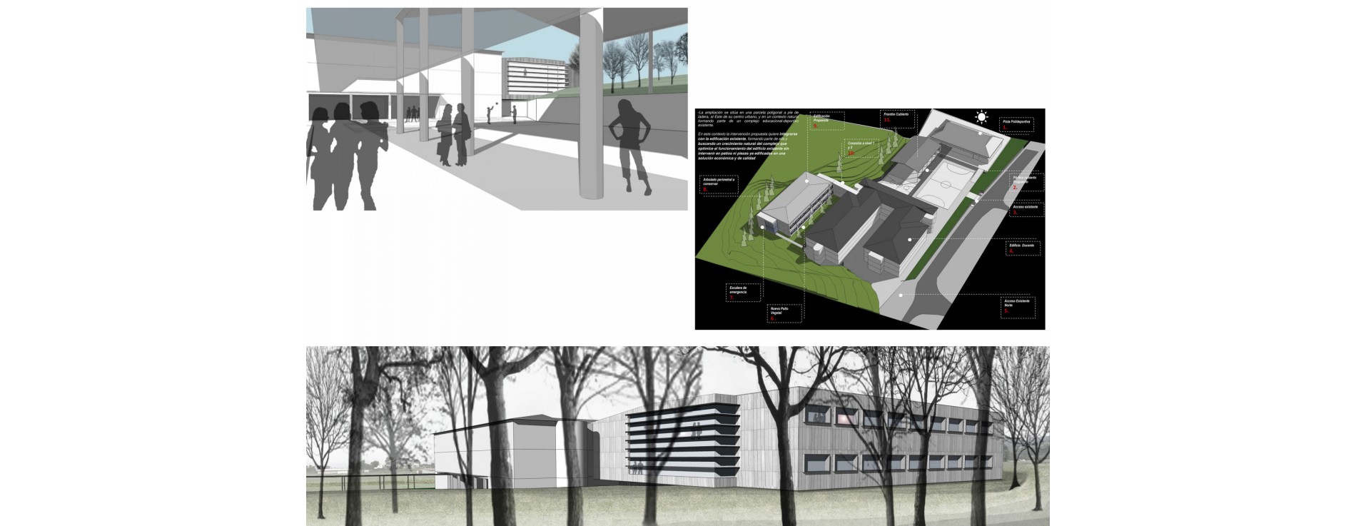 Características Aprovechar el área Este del solar, colateral al edificio educativo existente, para ubicar el nuevo pabellón, de tipología igual a la existente, de tal forma que sea una extensión natural, que aproveche y optimice la estructura funcional del edificio existente. La ampliación se conforma como otro cuerpo más del edificio.