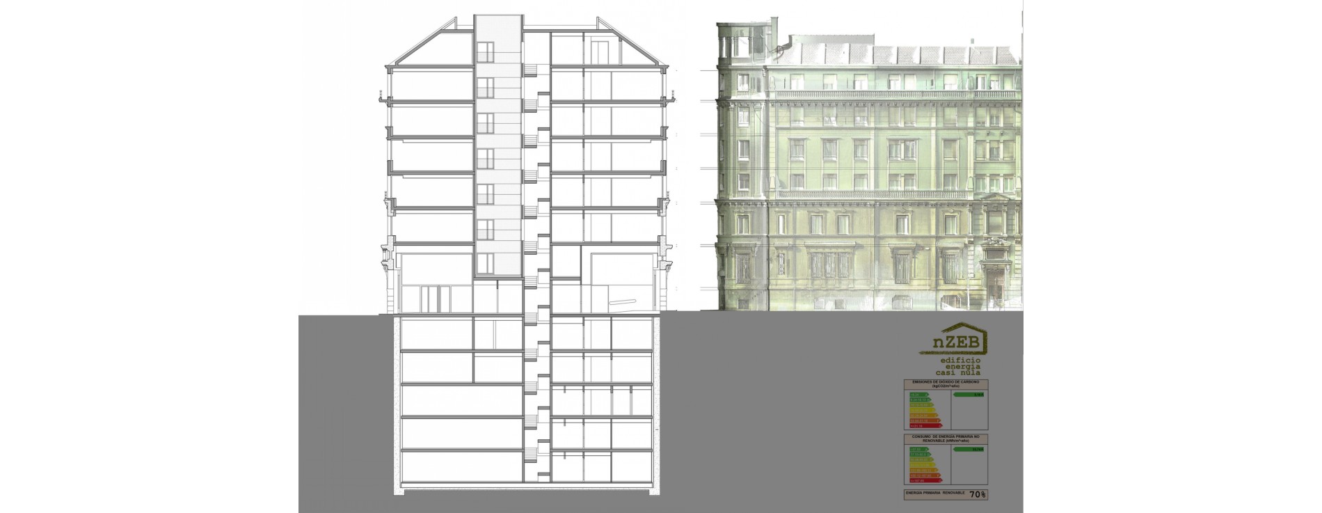 Reforma y ampliación de Edificio Protegido: Se plantea una actuación de importante calado conservando únicamente las fachadas de planta baja y primera, demoliendo el resto de la construcción, reconstruyéndola y excavando cinco sótanos.