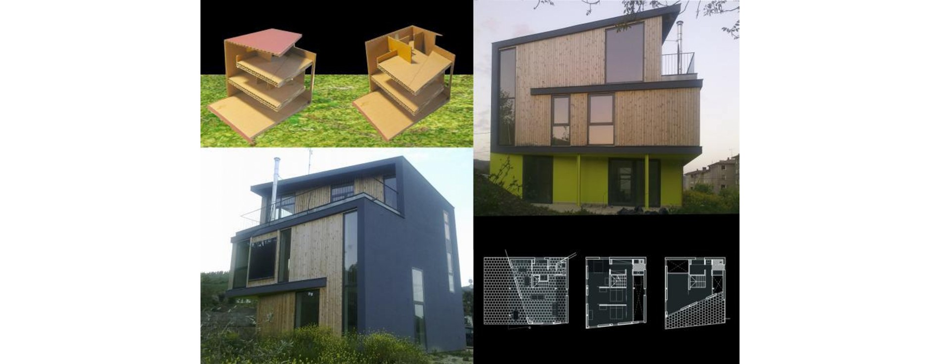 características: La casa toma posición en el lugar cerrándose al norte y al este, potenciando los valores de unidad de la construcción tradicional. Buscamos la variedad al sur y al oeste mediante la creación de pequeños espacios exteriores asimilados dentro de la propia estructura formal de la vivienda. El plano doblado, como elemento de composición de la vivienda, crea hendiduras para conquistar el aire.